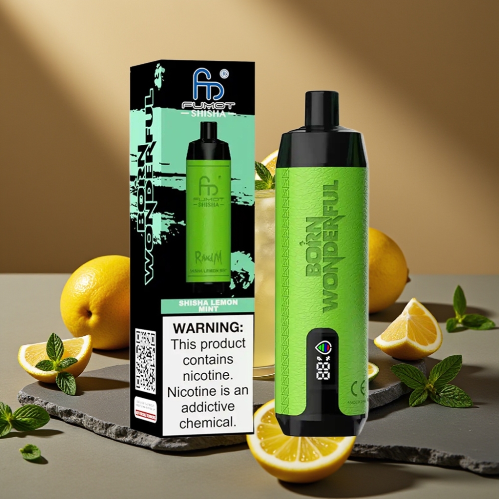 RandM Fumot Shisha 10000 Puffs Wegwerp Vape Citroen Munt met LED Indicator en Type-C Port