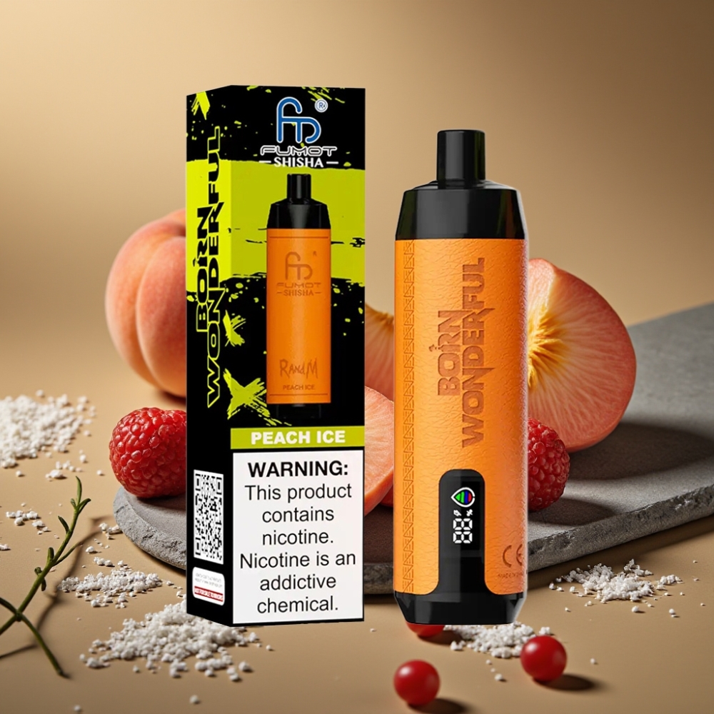 RandM Fumot Shisha 10000 Puffs Wegwerp Vape Perzik IJs met LED Indicator & Type-C Port
