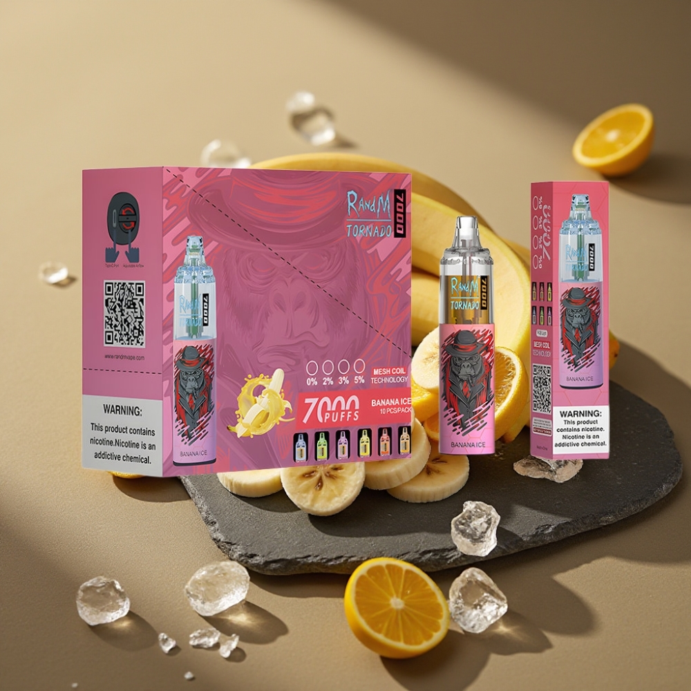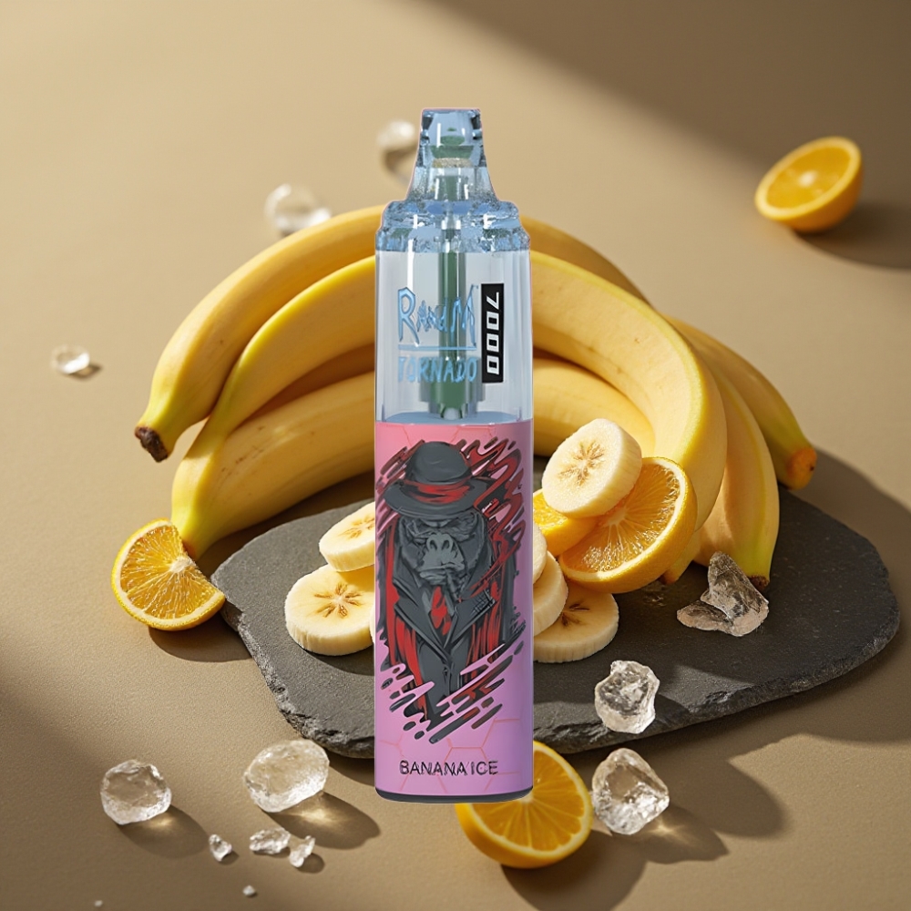 RandM Fumot Tornado 7000 Wegwerp Vape Banaanijs 14ML Mesh Coil