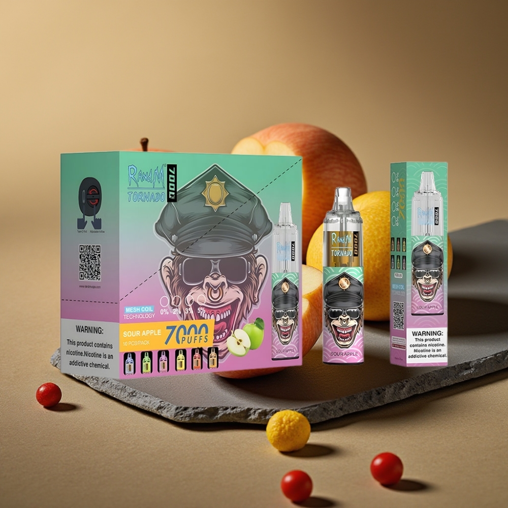 RandM Fumot Tornado 7000 Wegwerp Vape Zure Appel 14ML Mesh Coil