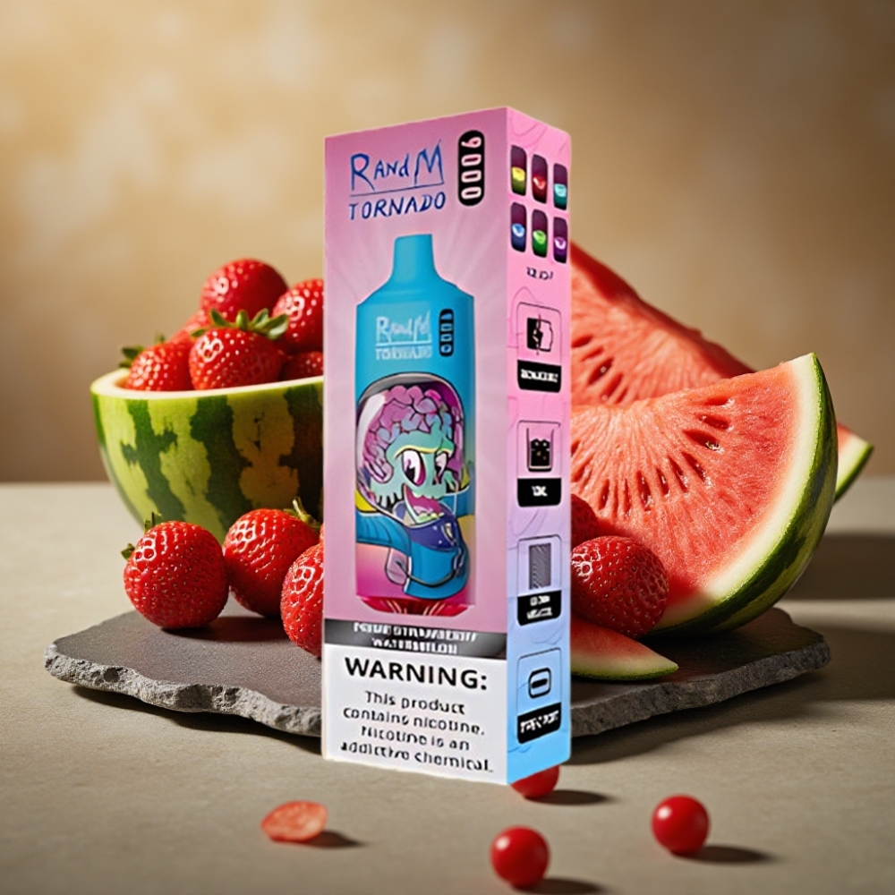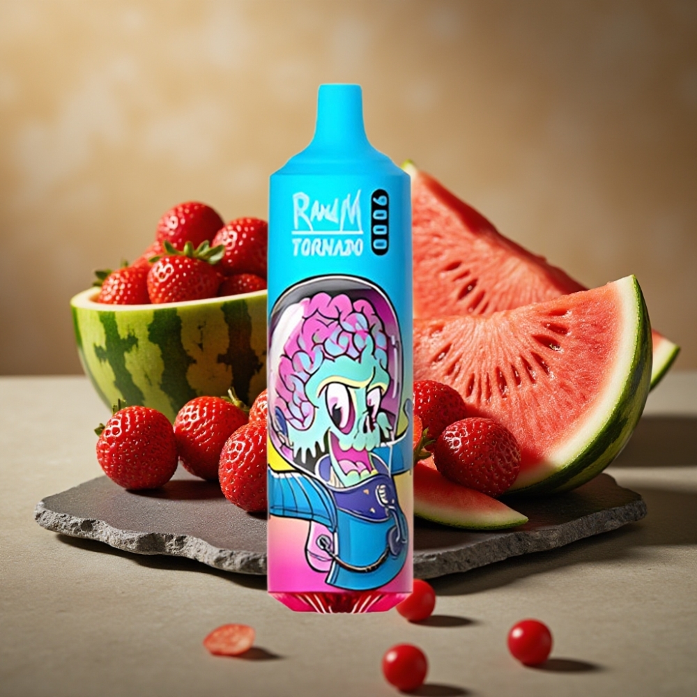 RandM Fumot Tornado 9000 Puffs Herlaadbare Wegwerp Vape Prime Aardbei Watermeloen & RandM Tornado 9000 Puffs 18 mL Mesh Coil