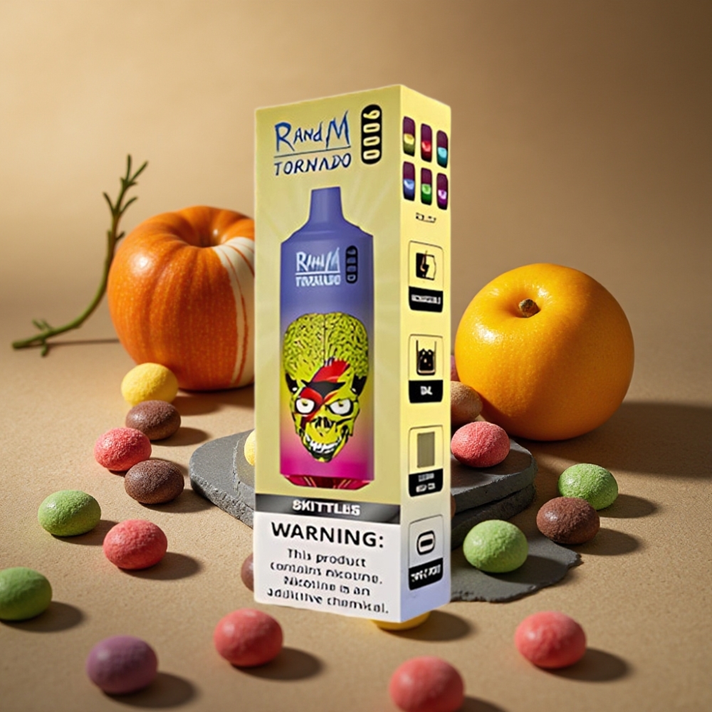 RandM Fumot Tornado 9000 Puffs Wegwerp Vape Skittles 18mL Mesh Coil RandM Tornado 9000 Puffs 850 mAh RGB Display