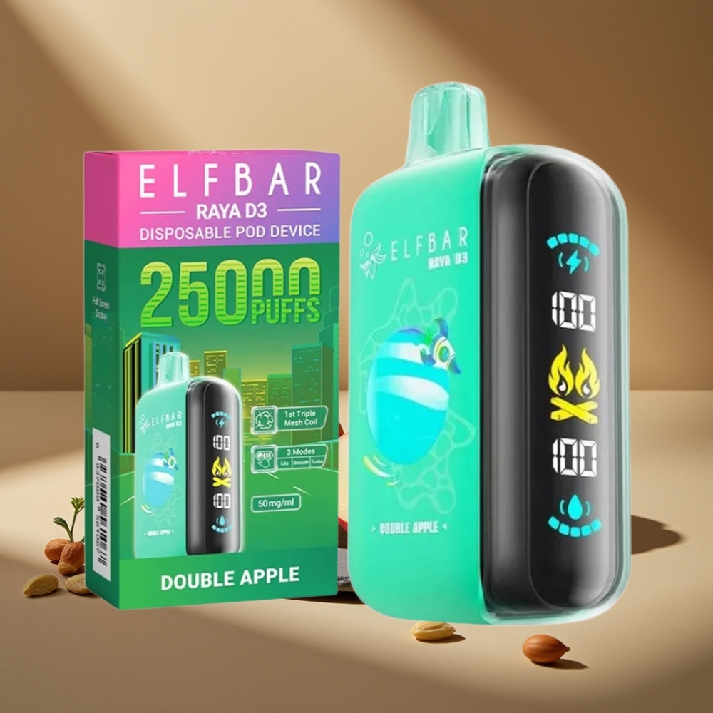 De ELF BAR RAYA D3 biedt een uitzonderlijke vaping ervaring dankzij zijn hoogwaardige ontwerp en lange gebruiksduur. Met een 23ml e-liquid voorraad en tot 25000 puffen, is deze wegwerp vape ideaal voor wie op zoek is naar gemak zonder in te leveren op kwaliteit. Dankzij de oplaadbare batterij geniet je van elke druppel e-liquid zonder verspilling.