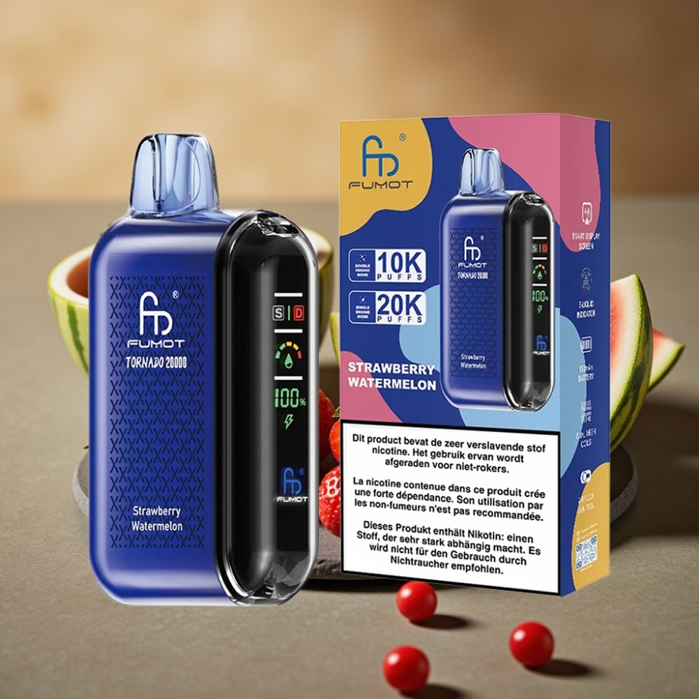 Fumot Tornado 20000 Puffs Wegwerp Vape Aardbei Watermeloen met 20ml E-liquid en Dual Mesh Coil