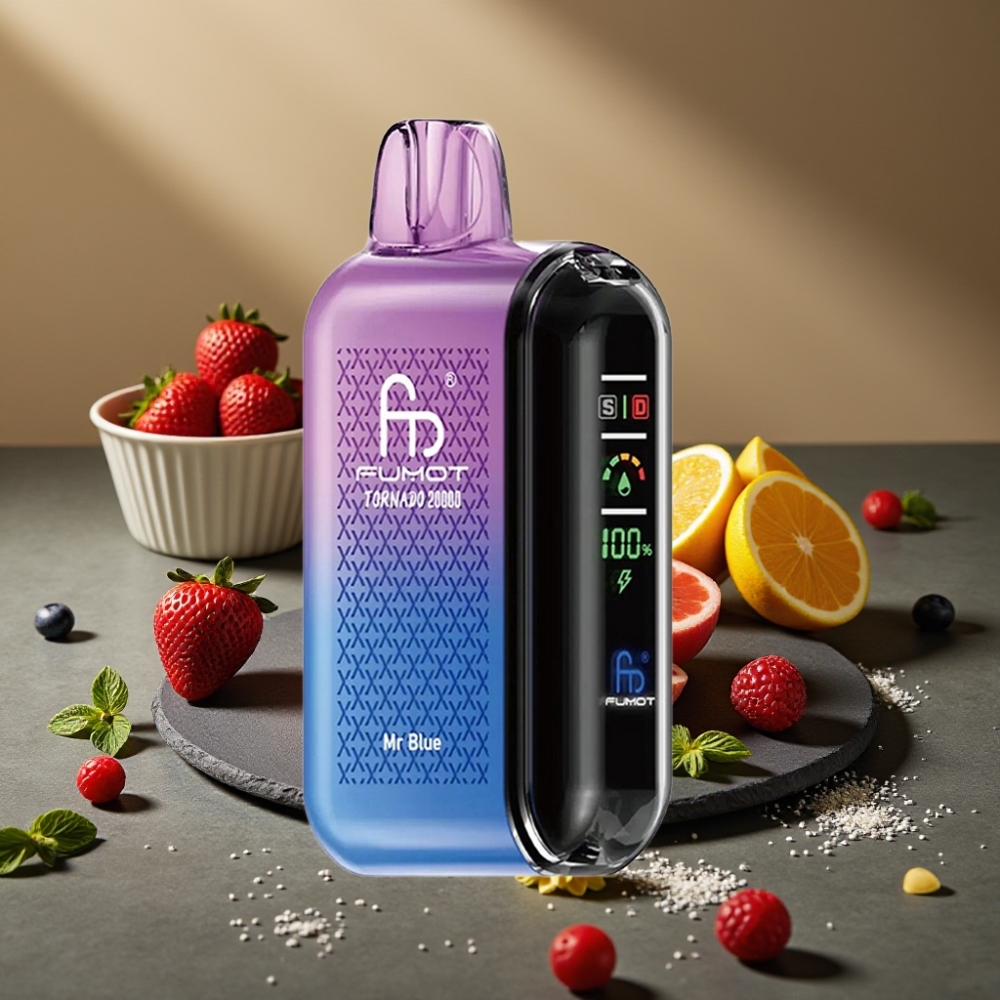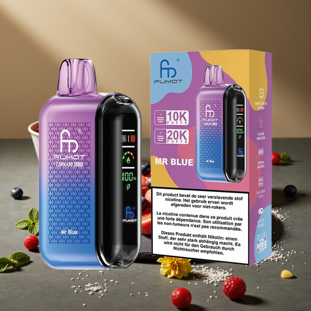 Fumot Tornado 20000 Puffs Wegwerp Vape Meneer Blauw met 20ml E-liquid en Dual Mesh Coil