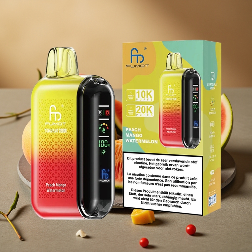 Fumot Tornado 20000 Puffs Wegwerp Vape Perzik Mango Watermeloen met 20ml & Dual Mesh Coil