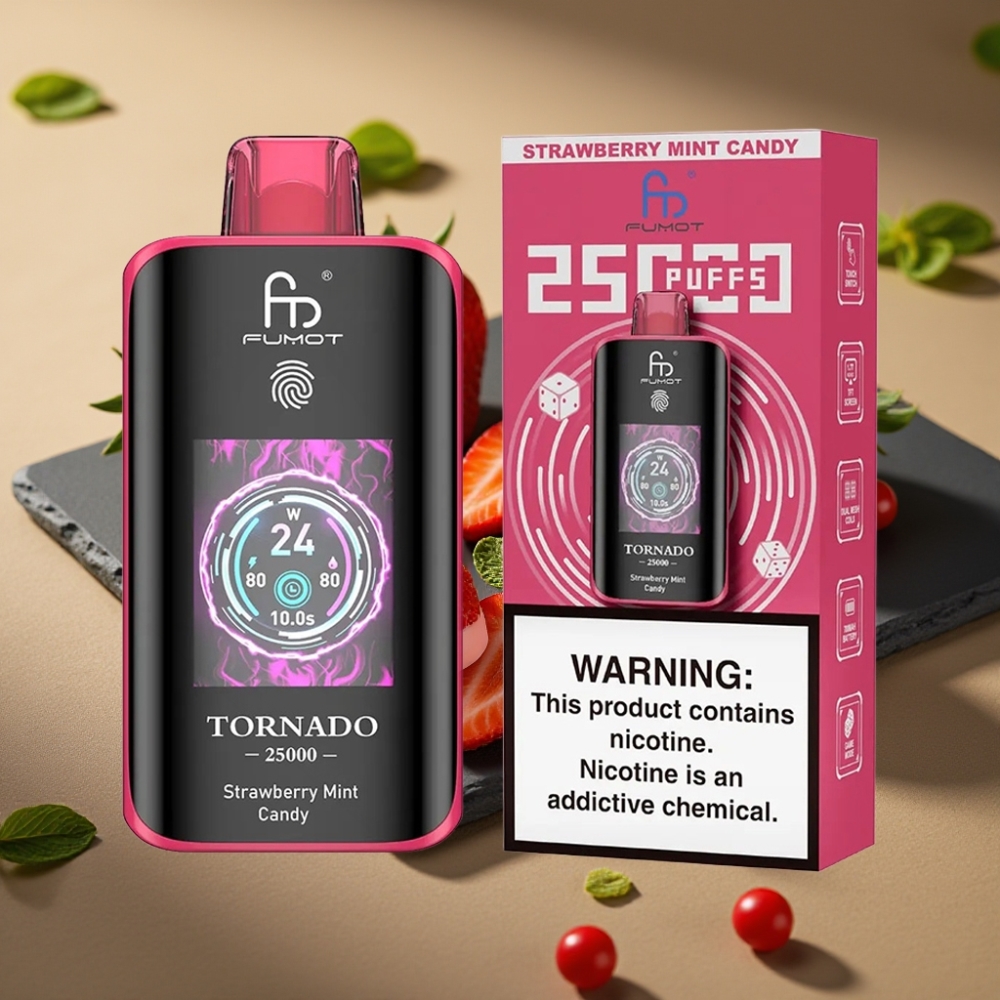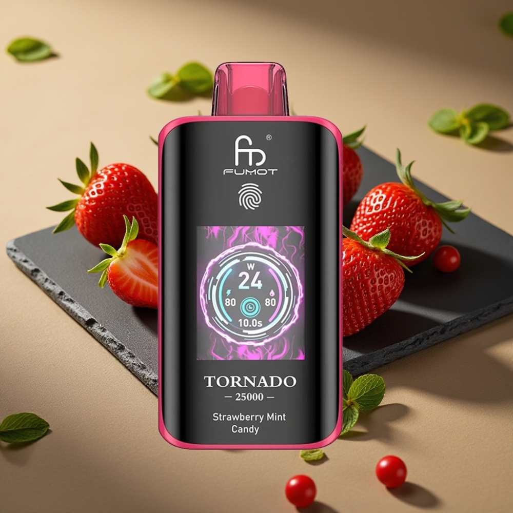 Fumot Tornado 25000 Puffs Aardbei Munt Snoep Wegwerp Vape met HD Scherm