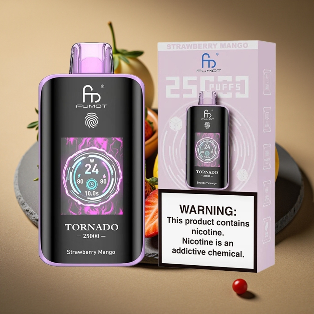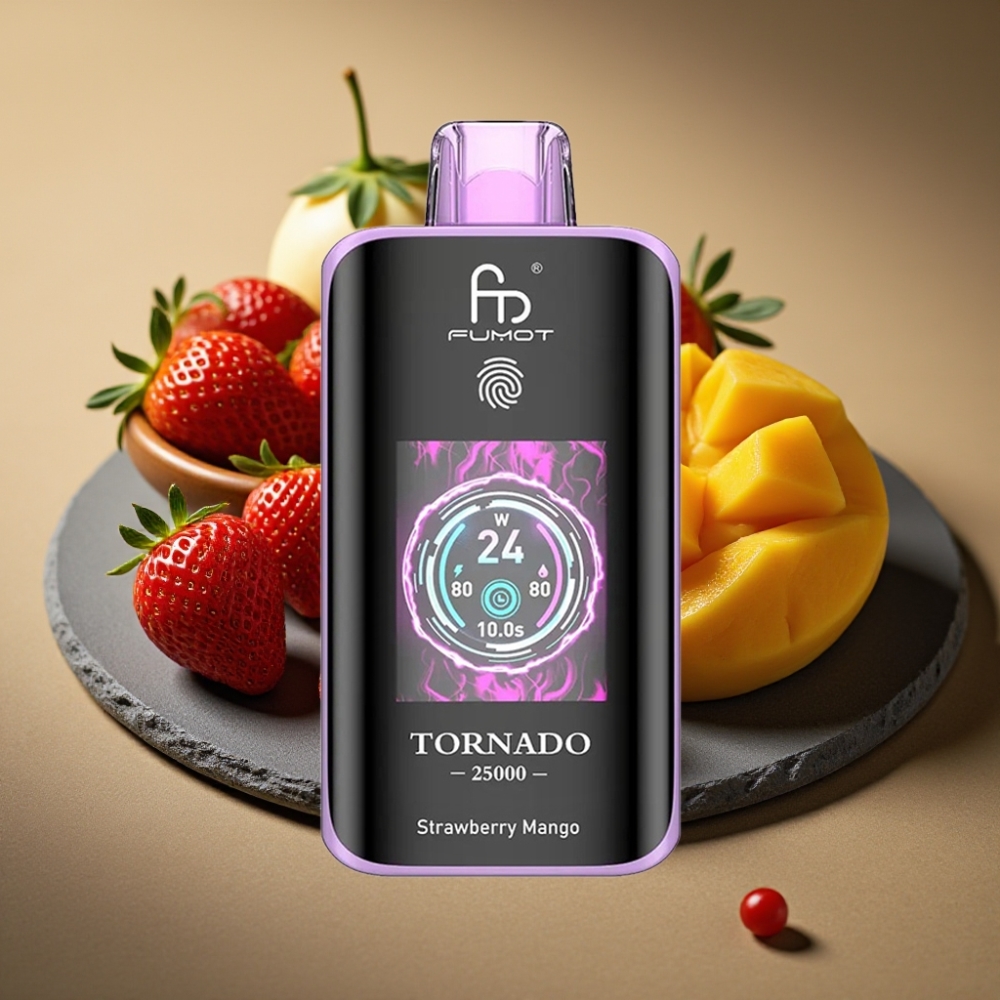 Fumot Tornado 25000 Puffs Wegwerp Vape Aardbei Mango met HD Scherm & Type-C