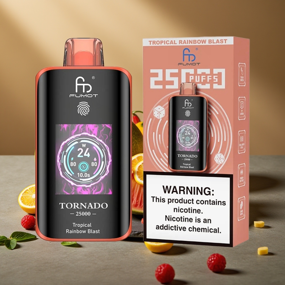 Ontdek de krachtige en duurzame Fumot Tornado 25000 Puffs, ontworpen voor een lange levensduur en intens dampgenot. Perfect voor Nederlandse groothandel en eindgebruikers die op zoek zijn naar een betrouwbare en krachtige e-sigaret.