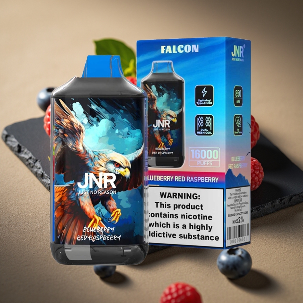 JNR Falcon 16000 Puffs Wegwerp Vape Blauwe Bes Rode Framboos 22ml JNR Falcon 16000 Puffs 850 mAh Dual Mesh Coil