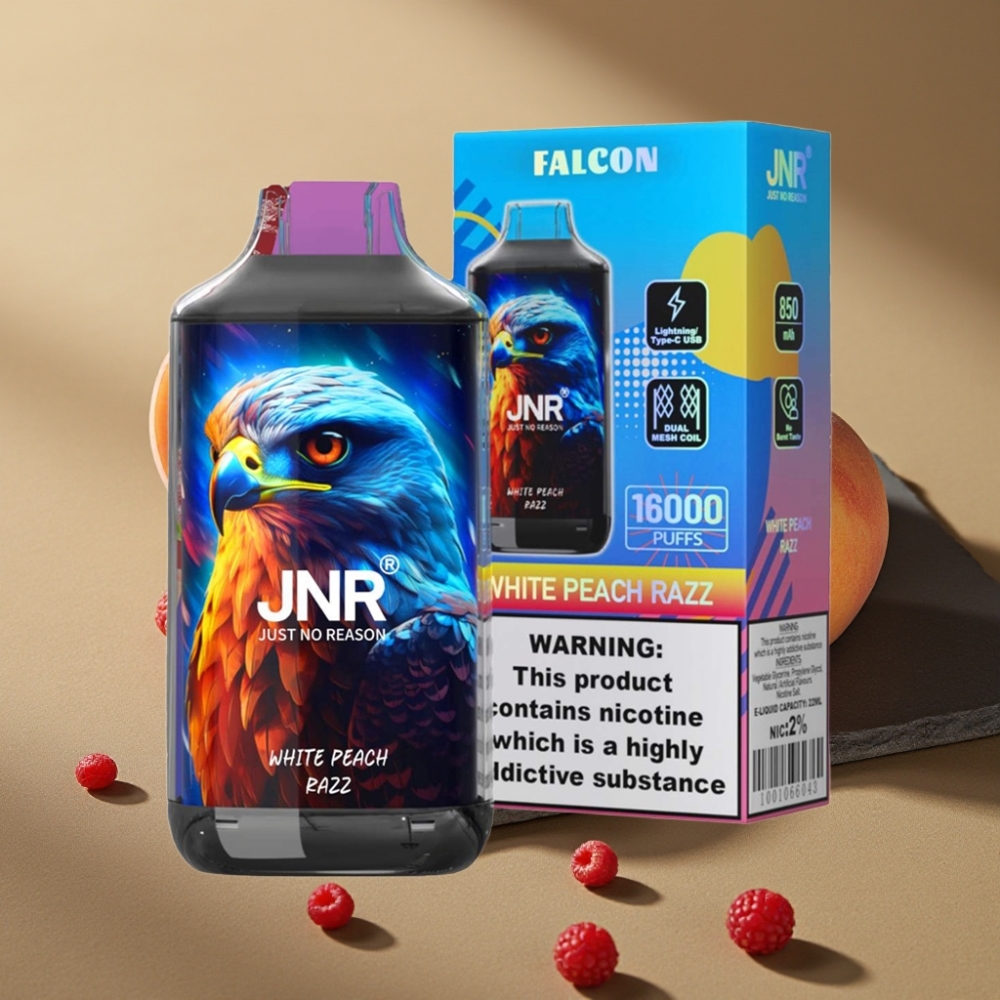 De JNR Falcon 16000 Puffs is een krachtige en duurzame Wegwerp Vape met geavanceerde functies, perfect voor de Nederlandse markt. Met een enorme 22ml e-liquid capaciteit en een 850 mAh batterij, biedt deze vape een langdurig en consistent gebruik zonder vaak opladen of bijvullen.