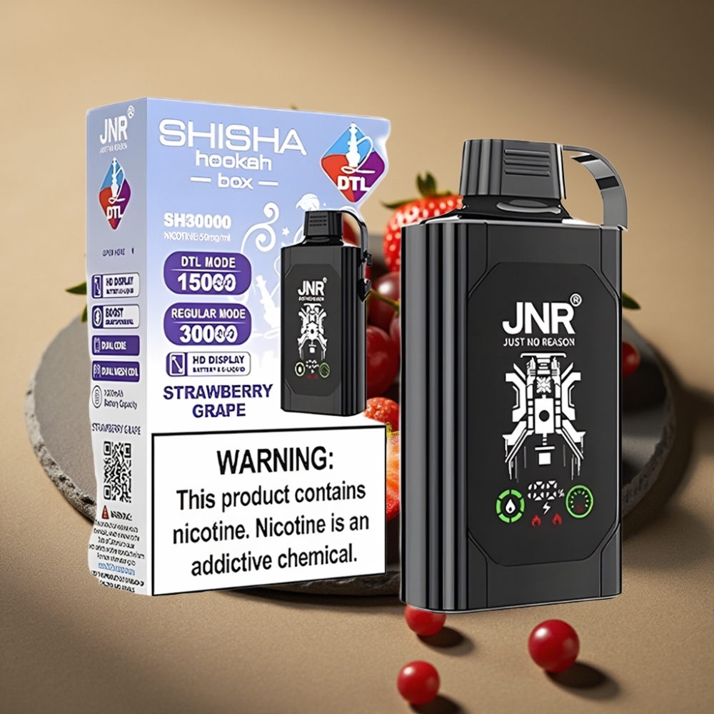 JNR Shisha Hookah Box 20500 Puffs Disposable Aardbei Druif met HD Display & Type-C