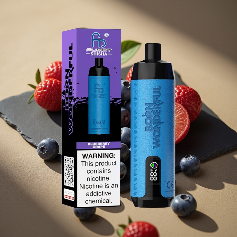 RandM Fumot Shisha 10000 Puffs Wegwerp Vape Blauwe Bes Druif met LED Indicator met Type-C Port