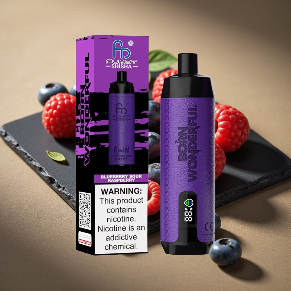 RandM Fumot Shisha 10000 Puffs Wegwerp Vape Blauwe Bes Zure Framboos met LED Indicator