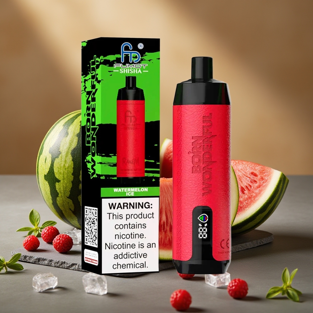 RandM Fumot Shisha 10000 Puffs Wegwerp Vape Watermeloen IJs met LED Indicator en Type-C Port