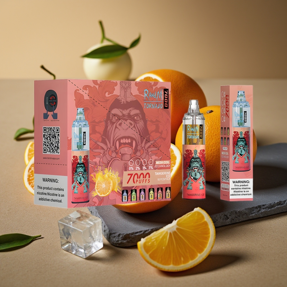 RandM Fumot Tornado 7000 Puffs Wegwerp Vape Tangerijn IJs & Fumot Tornado 7000 Wegwerp Vape 14ML Mesh Coil
