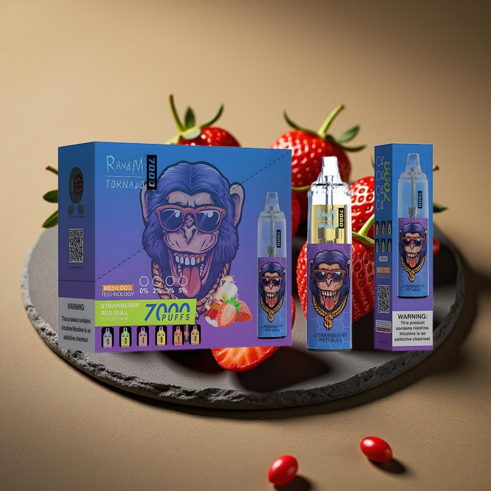 RandM Fumot Tornado 7000 Wegwerp Vape Aardbei Red Bull & 14ML