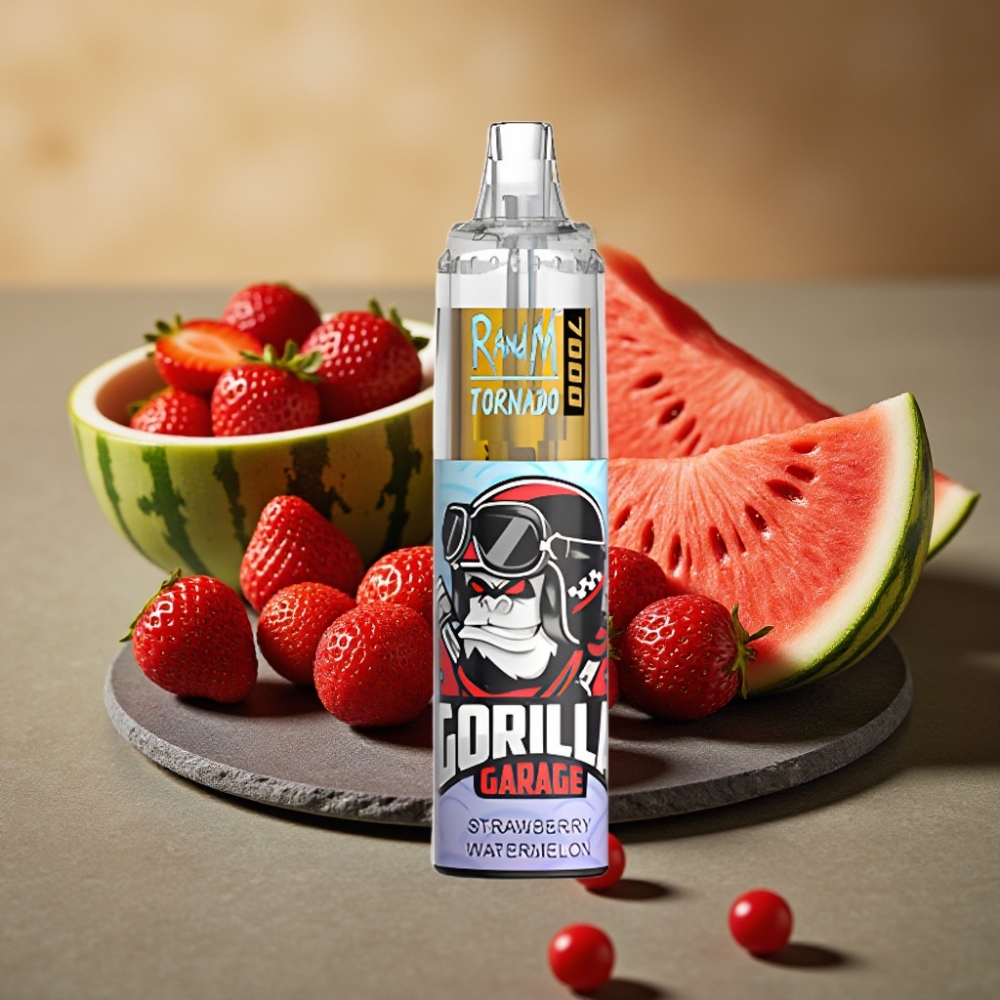 RandM Fumot Tornado 7000 Wegwerp Vape Aardbei Watermeloen met Mesh Coil & Type-C