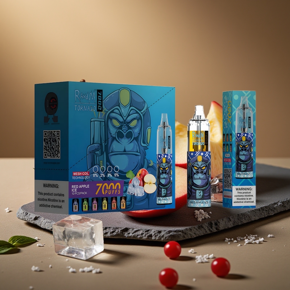 RandM Fumot Tornado 7000 Wegwerp Vape Rode Appel Ijs met Mesh Coil & Type-C