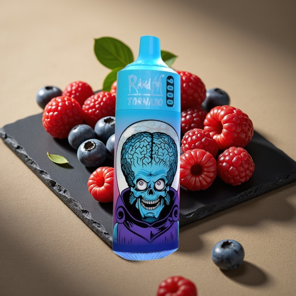 RandM Fumot Tornado 9000 Puffs Wegwerp Vape Blauwe Bes Kers Cranberry 850 mAh 18 mL Mesh Coil RGB Display