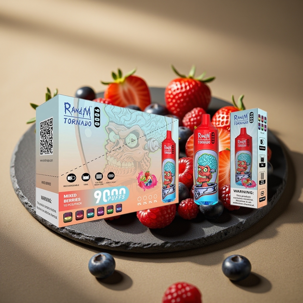 RandM Fumot Tornado 9000 Puffs Wegwerp Vape Gemengde Bessen 18 mL RGB Display RandM Tornado 9000 Puffs Wegwerp Vape 850 mAh Mesh Coil