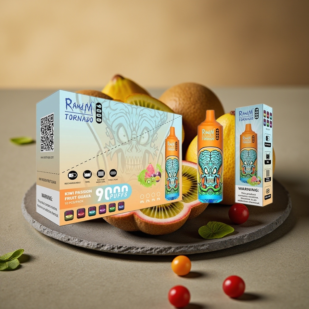 RandM Fumot Tornado 9000 Puffs Wegwerp Vape Kiwi Passievrucht Guave 18 mL RandM Tornado 9000 Puffs 850 mAh Herlaadbaar