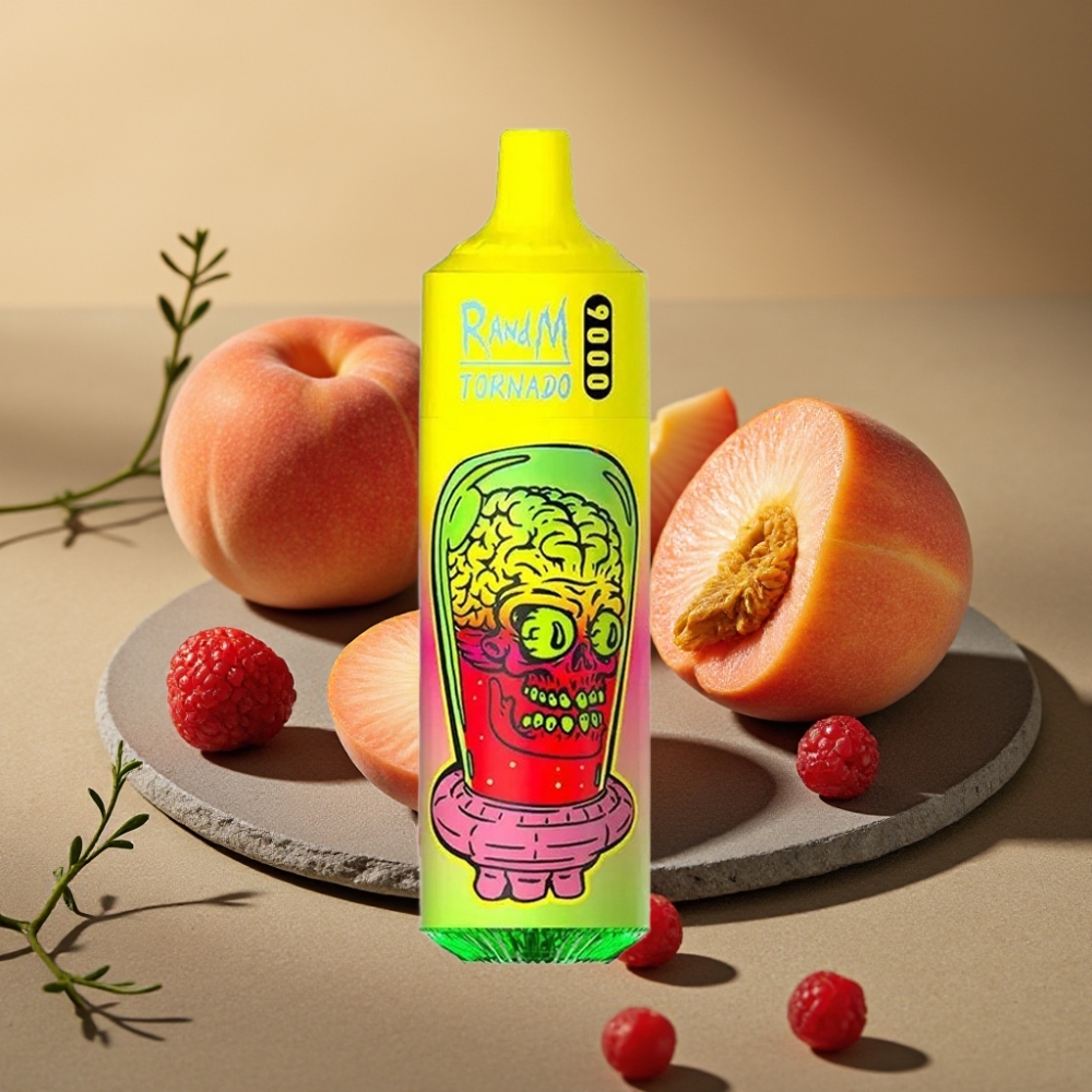 RandM Fumot Tornado 9000 Puffs Wegwerp Vape Zomerse Perzik Ijs & RandM Tornado 9000 Puffs, 18 mL, Mesh Coil